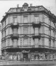 Spätklassizistische Mietshausgruppe von ca. 1858 als originelle Ecklösung. |